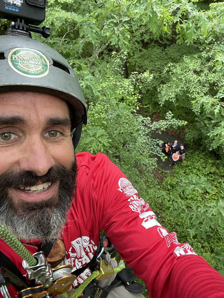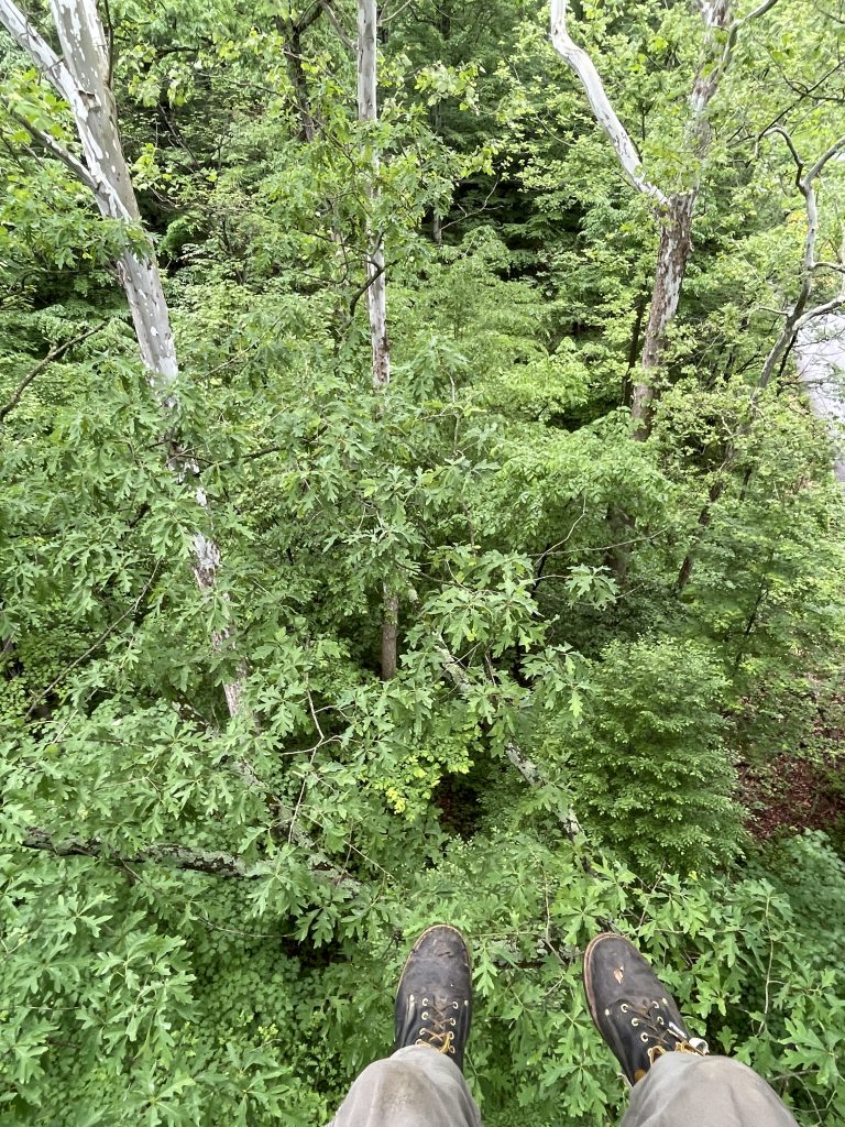 There is growing concern about White Oaks not regenerating at the rate we foresters would like to see. It is unclear why this is the case but throughout the Appalachian Mountains the young Oak are just not being seen. I recently heard about “The White Oak Initiative” which is putting effort into solving this mystery. I got to climb a beautiful White Oak at Cunningham Falls state park while visiting the Catoctin Furnace for the Maryland Iron Festival. Thank you to ranger Mark for picking out a fine specimen of a tree for me. He and his crew even removed the poison ivy from the tree a few days before I visited.