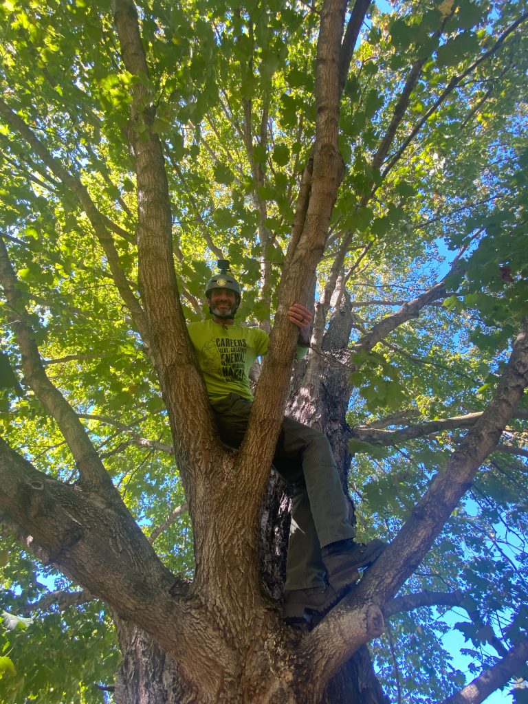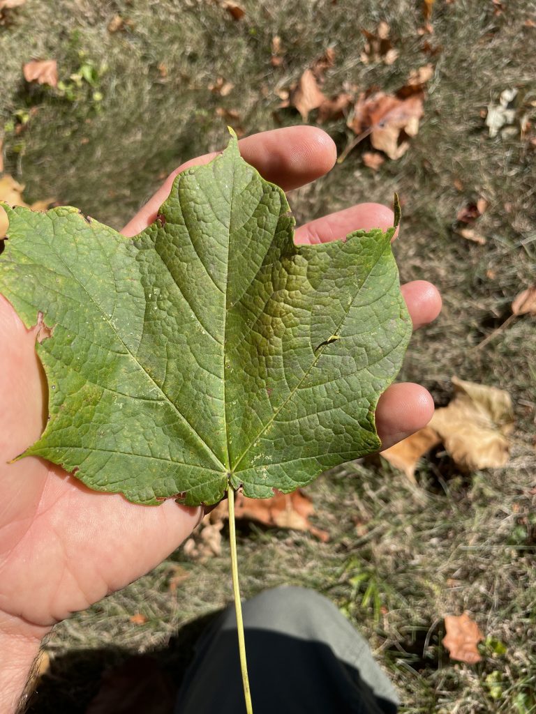 On Oct 5th, I climbed a Sugar Maple tree in Little Falls, West Virginia. The state tree here is the Sugar Maple. There are several species of Maple native to this state. Sugar Maple lumber is sold as “hard maple” and is used to make a wide variety of products. Every basketball court and bowling alley in the country, or at least all the ones I have seen, are made from hard maple. This is also the preferred species for making maple syrup.